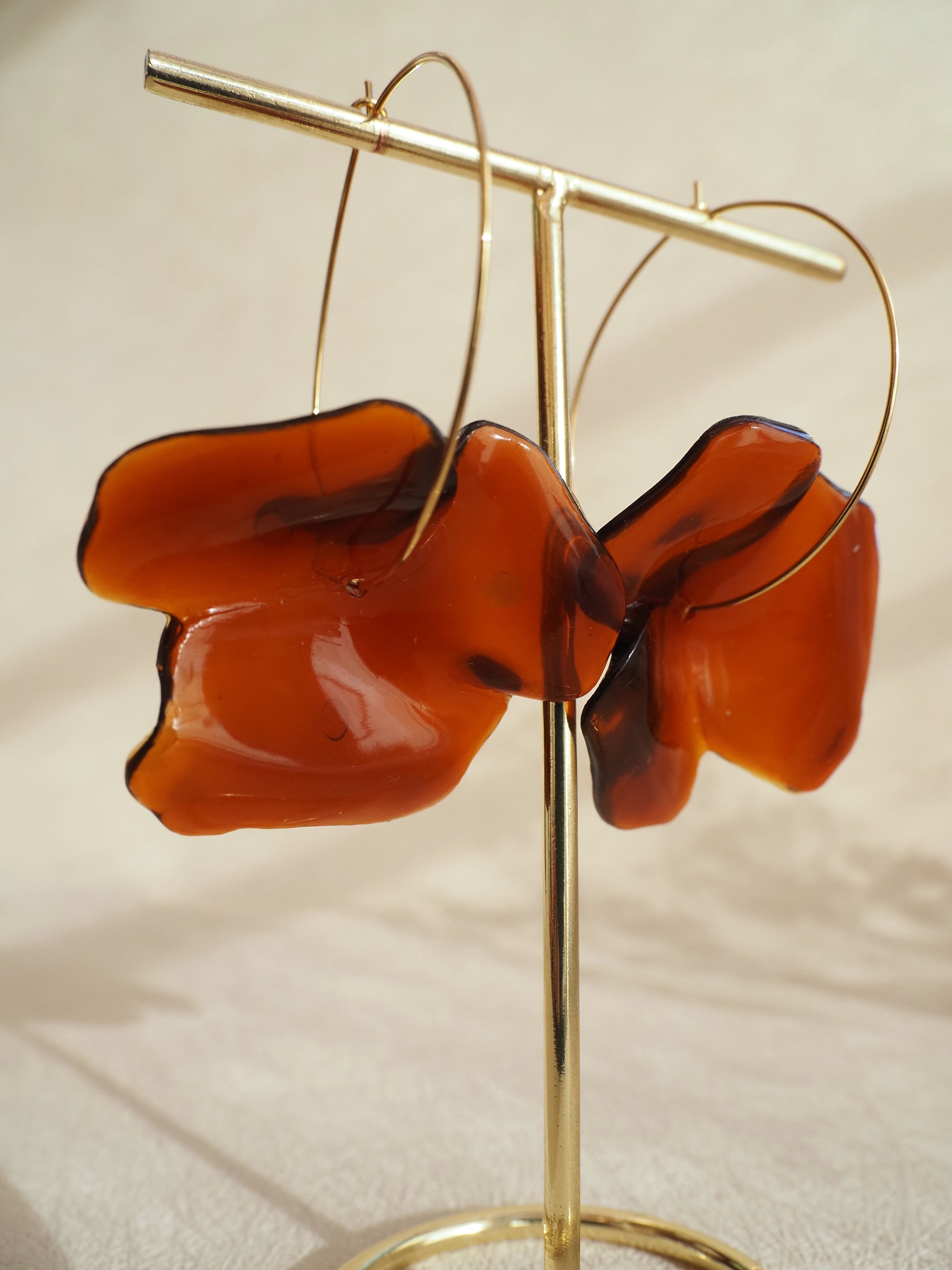 Boucles d'oreilles créoles ALICE - Dorées à l'or fin & fleurs ambrées | Bijou romantique